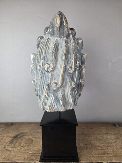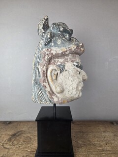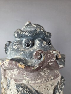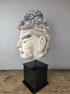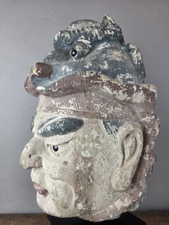 Wooden head on a base, representing a temple guardian, China, late 19th century