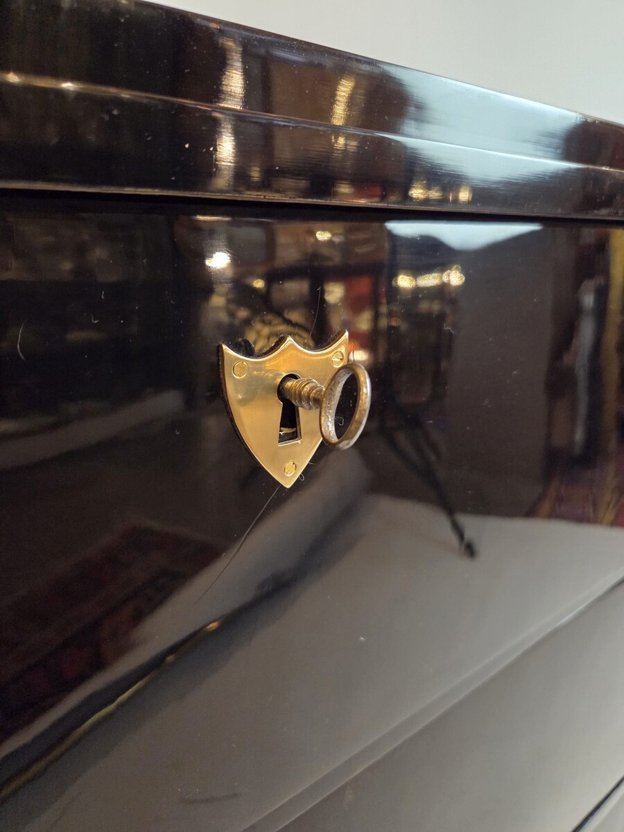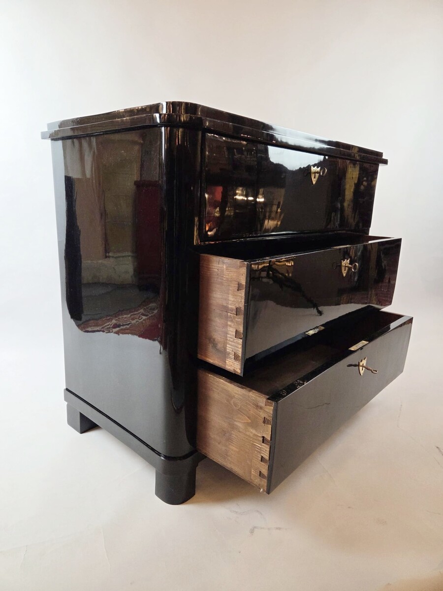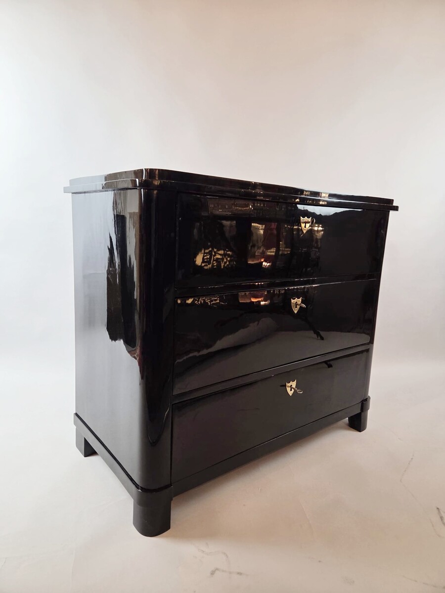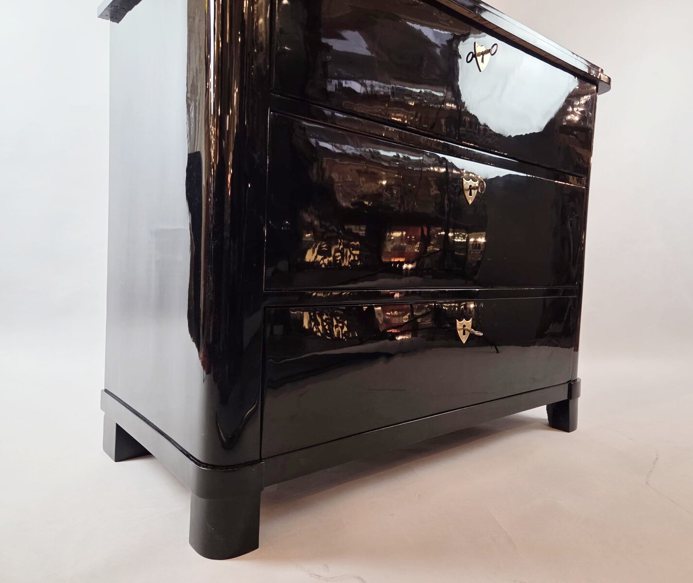 Biedermeier chest of drawers in black lacquered wood, late 19th century