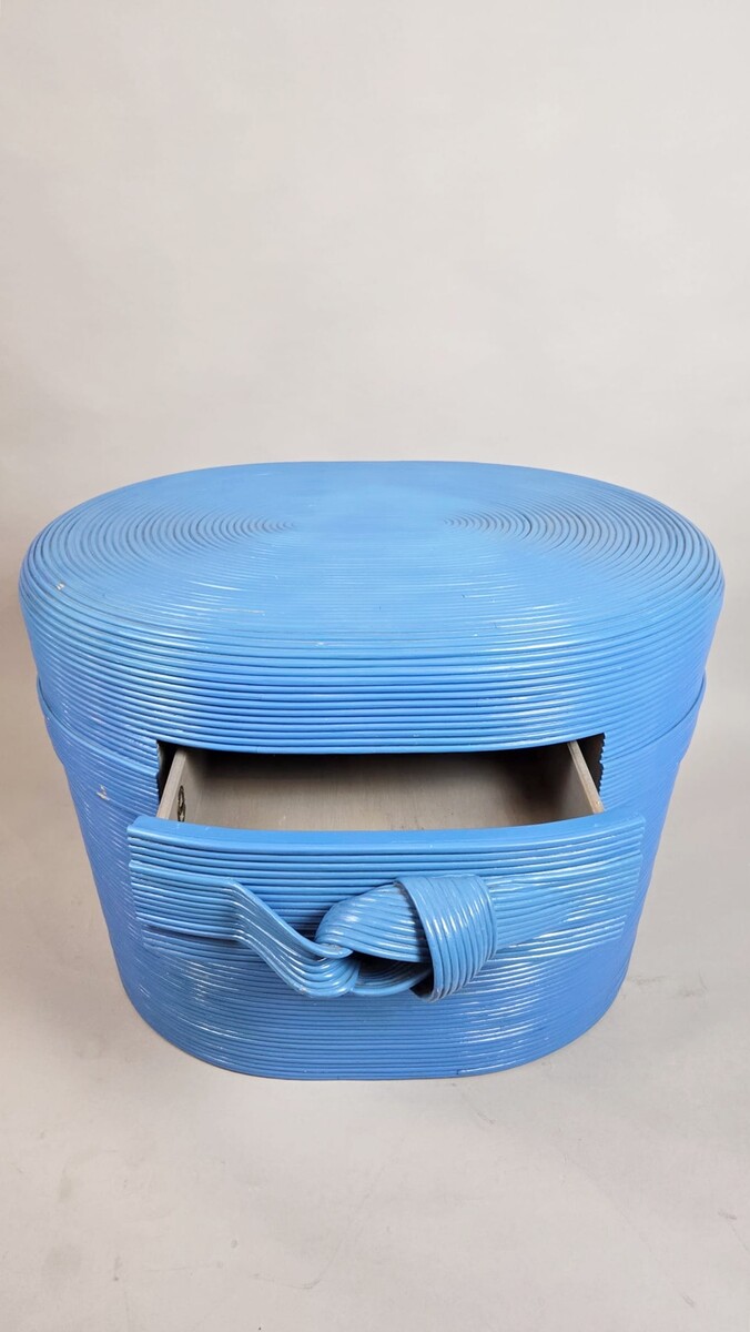 Chest of drawers in blue wood and rattan, Vivai del Sud, 1960s