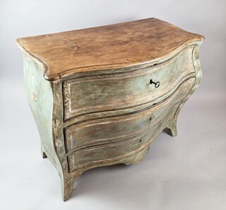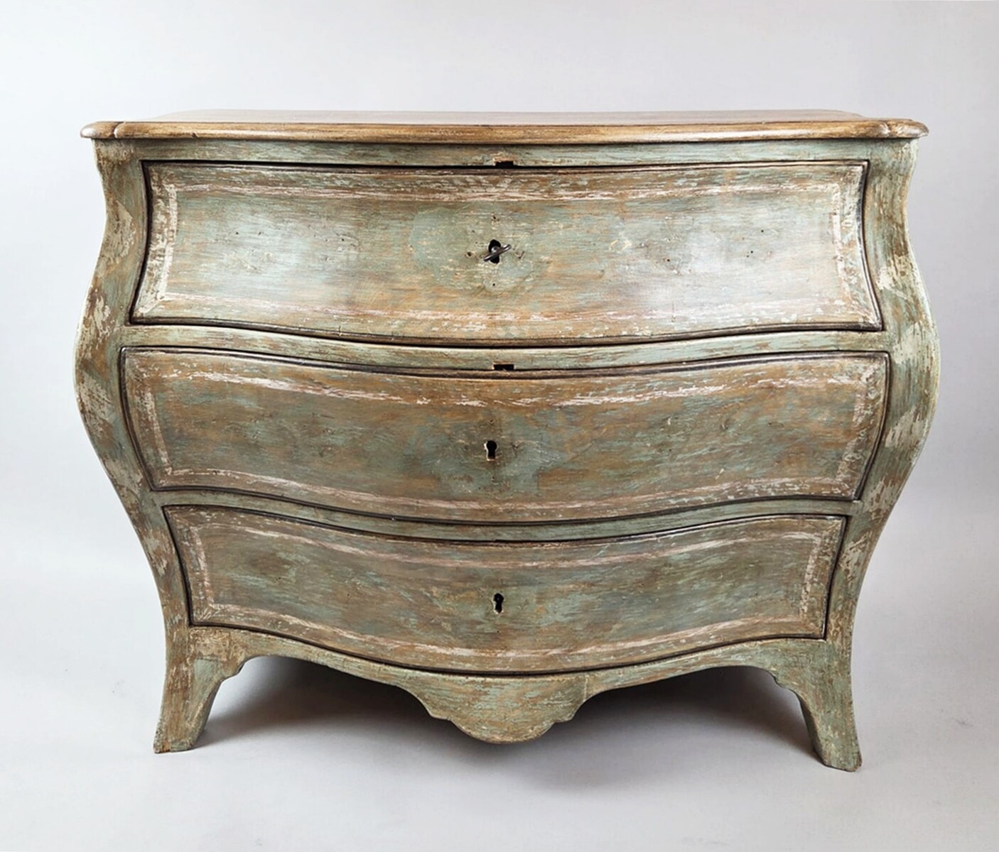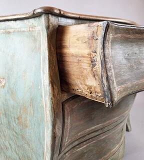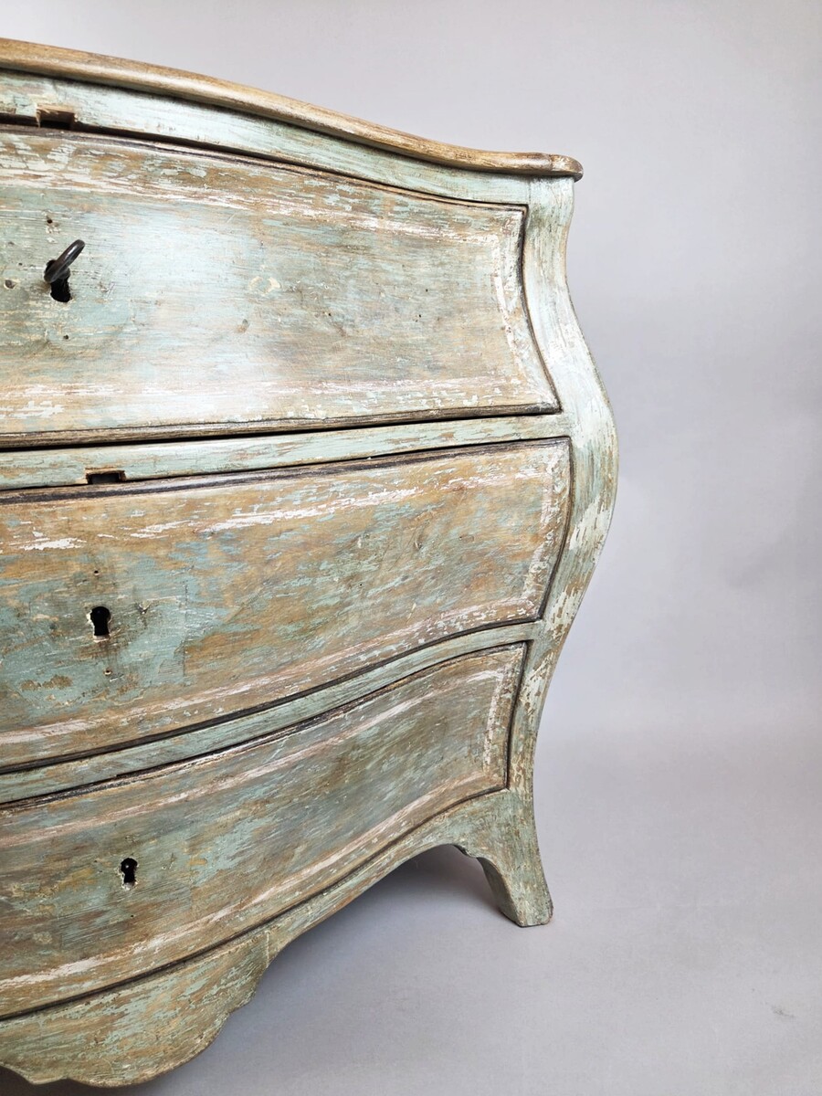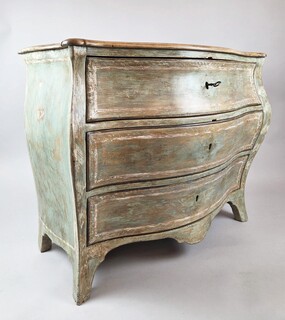 Louis XV style curved chest of drawers in patinated wood, Sweden 19th century