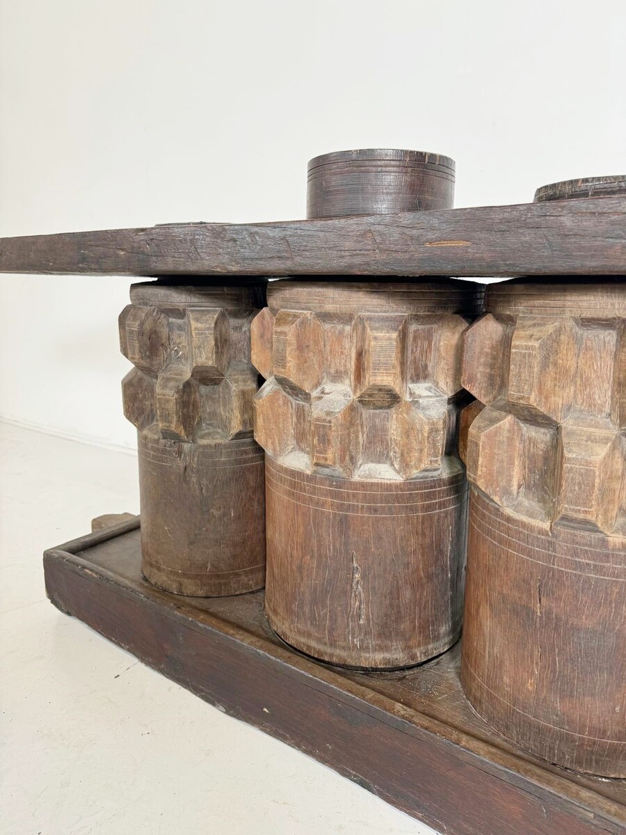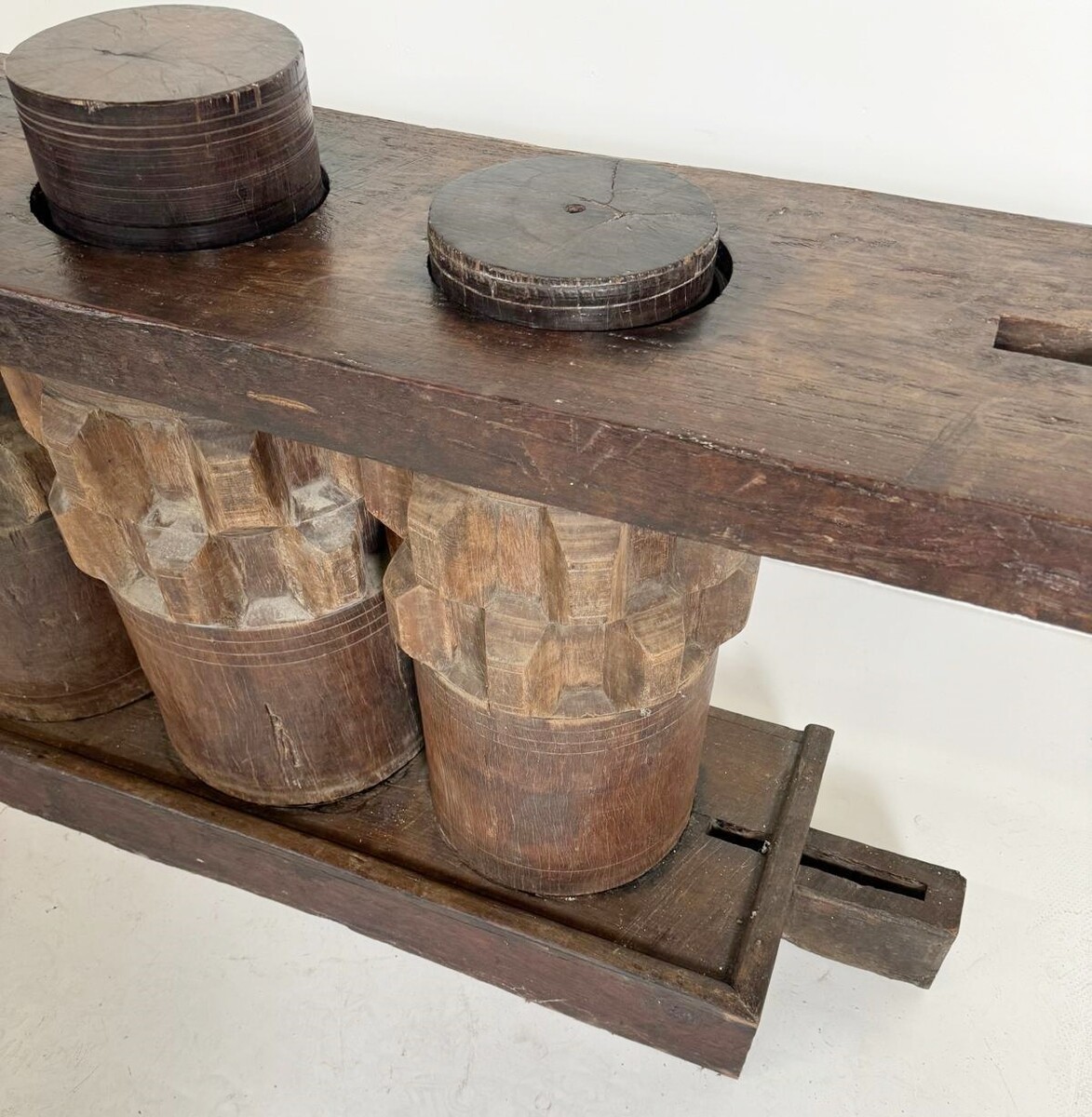 Wooden Console Made Of Sugar Cane Crusher Elements.