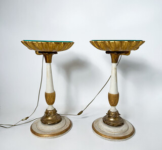 Pair of shell-shaped bedside tables, wood and glass, 1900s.