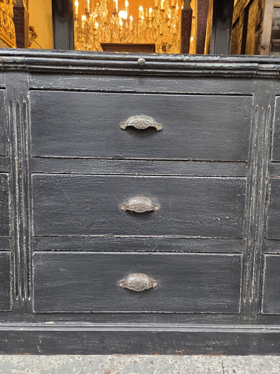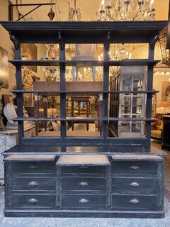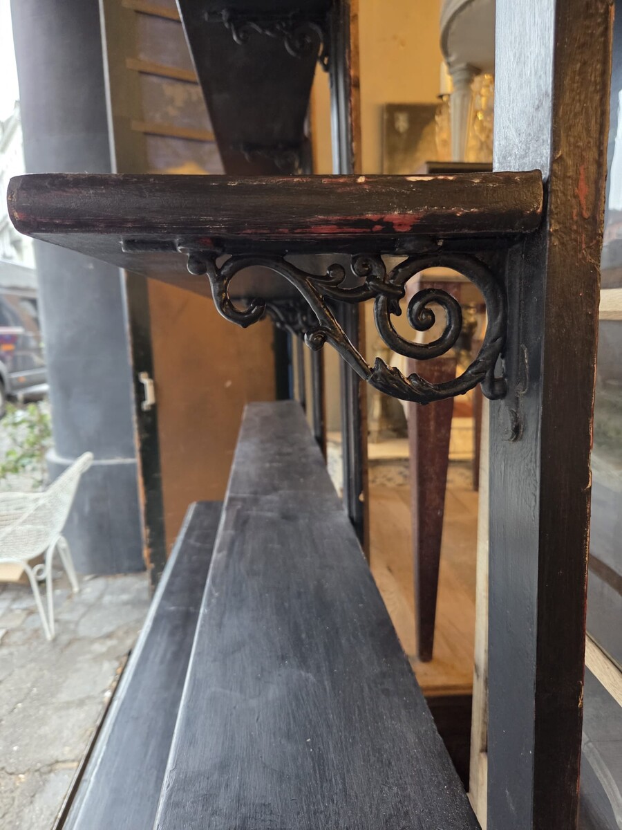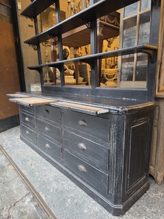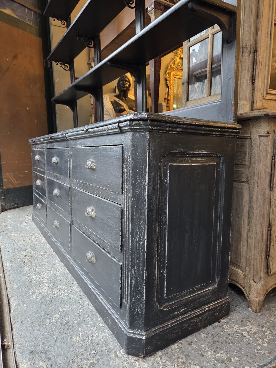 A piece of black polystyrene wood workshop furniture, circa 1900