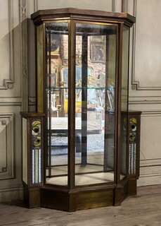 Art Deco Showcase In Brass And Colored Glass, stained glass, overhead and side lighting, double lock