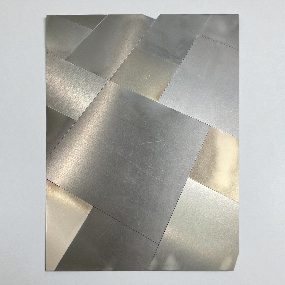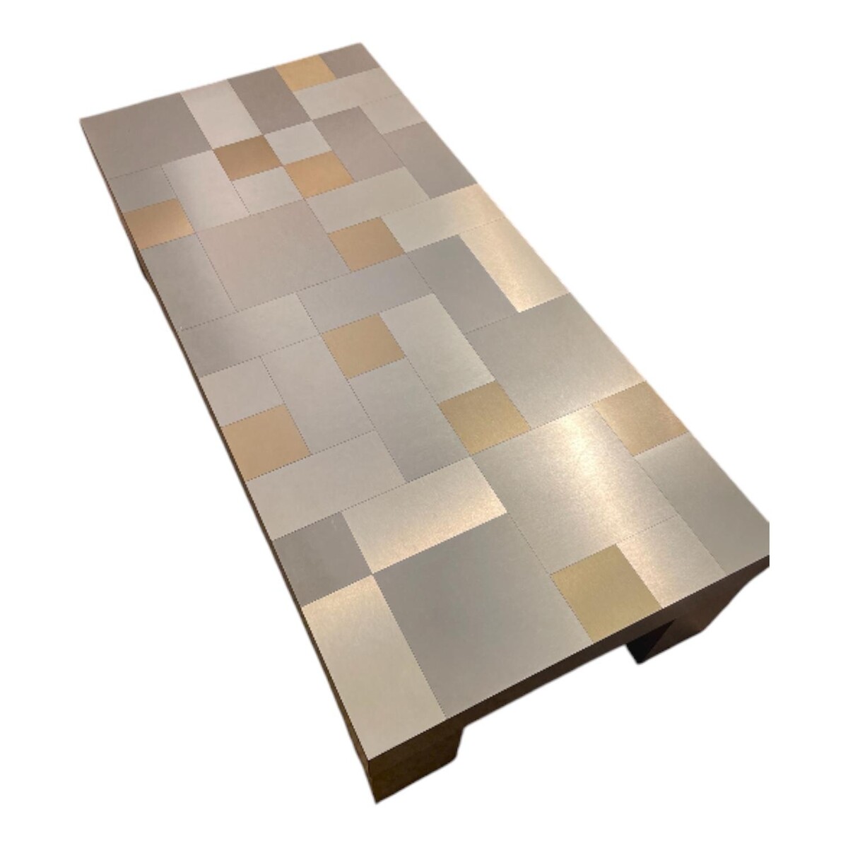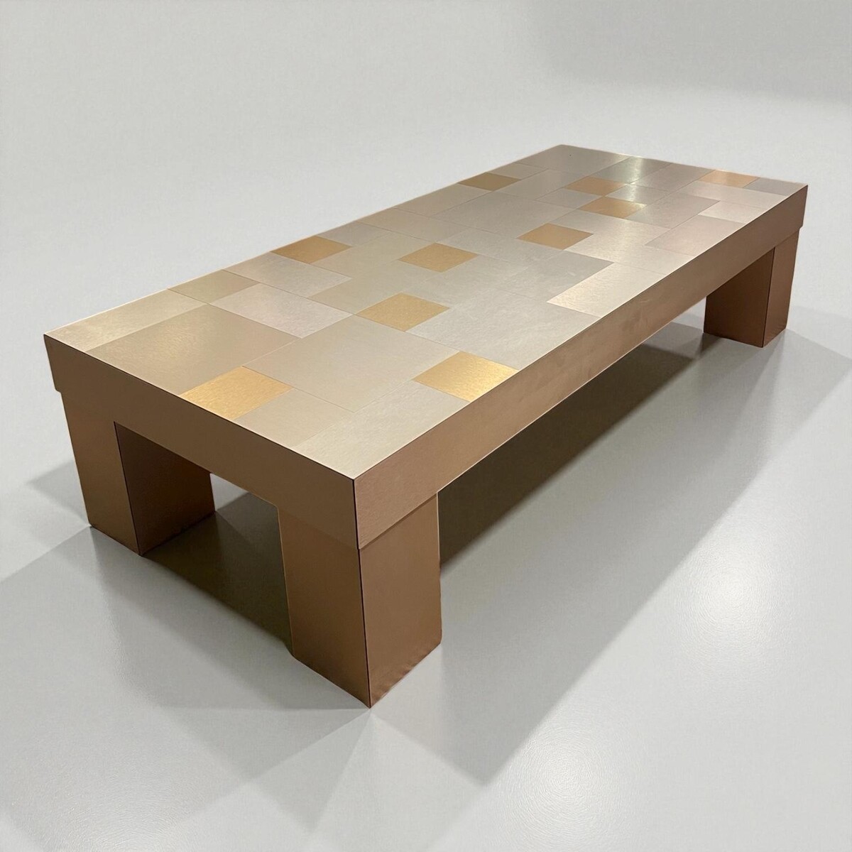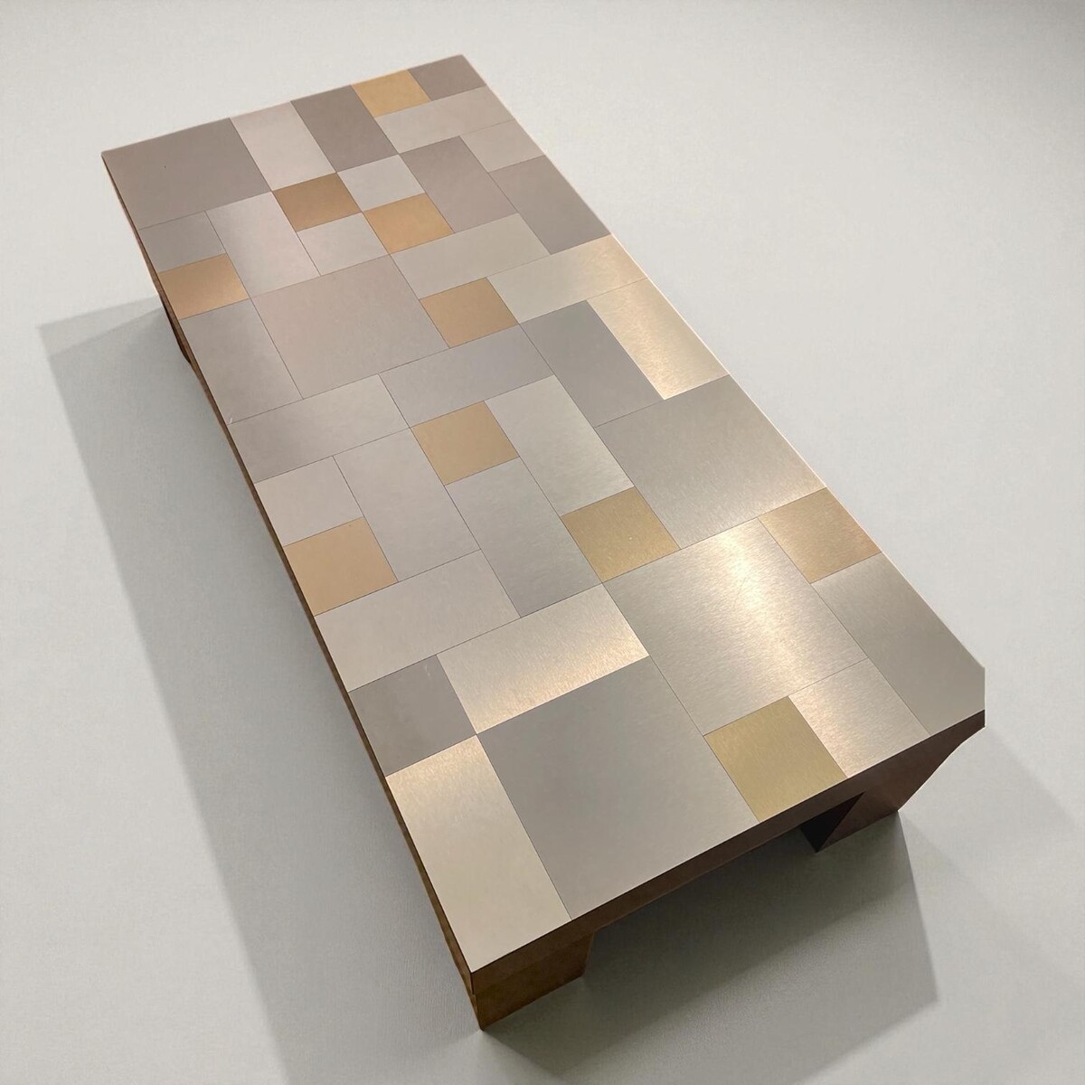 1970s low coffee table in brass and brushed aluminum mosaic (design Willy Rizzo)