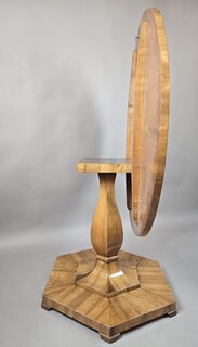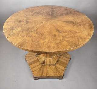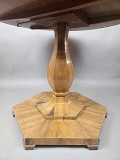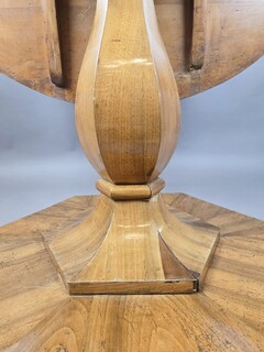 Biedermeier pedestal table with a folding top in burr walnut, 19th century