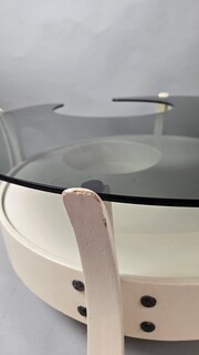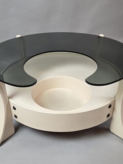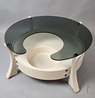 Coffee table in white lacquered wood with a smoked glass top, 1970
