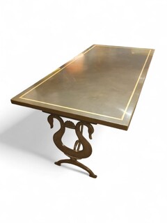 Dining room table in the style of Maison Jansen, lacquered top, cast iron and wrought iron base, circa 1970
