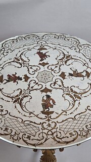 Wrought iron coffee table, mirrored top decorated with "large monkey" motifs by Christoph Huet, circa 1950