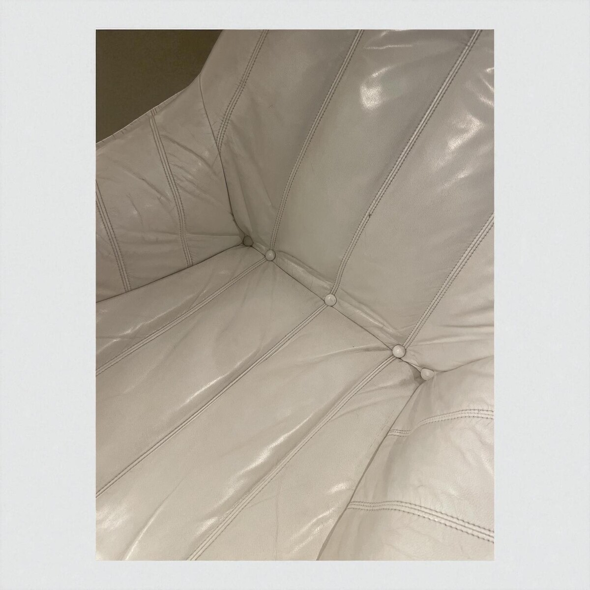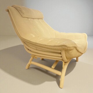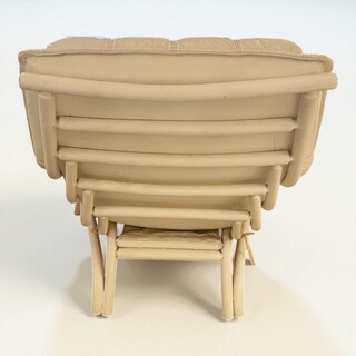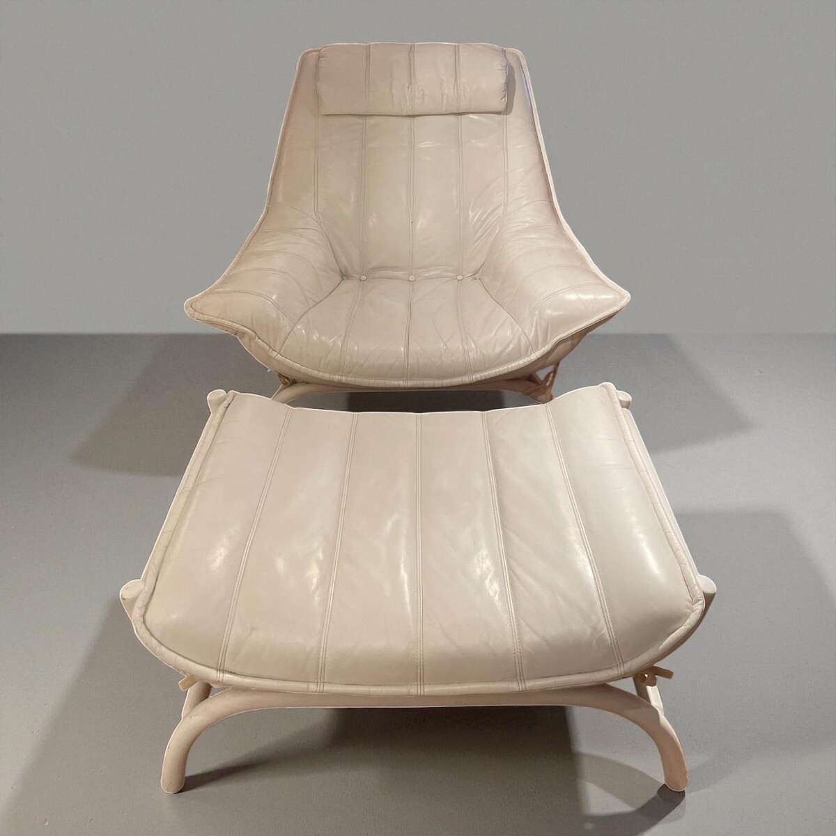 Armchair and footstool in white leather and white patinated rattan, circa 1970