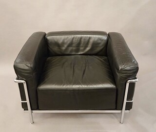LC3 armchair in black leather, Le Corbusier, 1970s