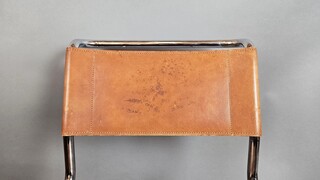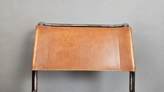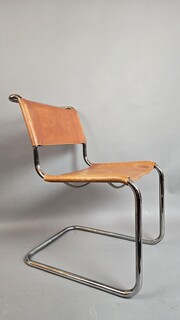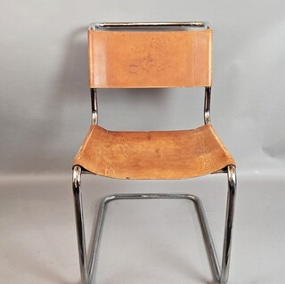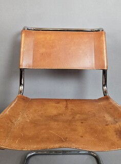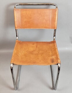 Set of 6 Thonet chairs in tubular metal, yellow leather seats.