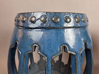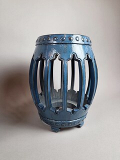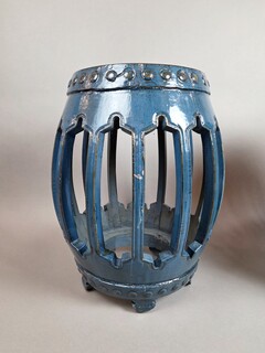 Pair of blue lacquered wood stools, China late 19th early 20th