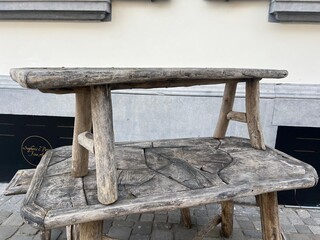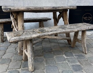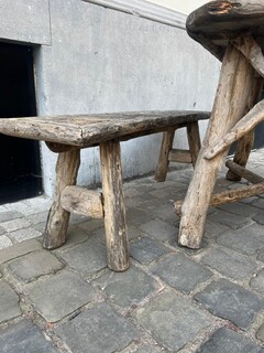 Garden set including table and 2 benches, early 20th