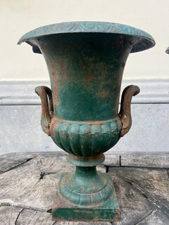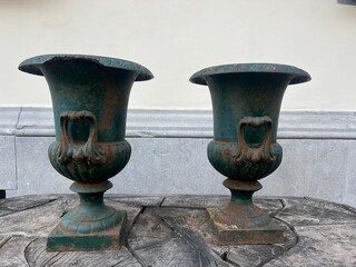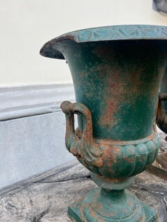 Pair of Medici basins in green lacquered cast iron, 20th