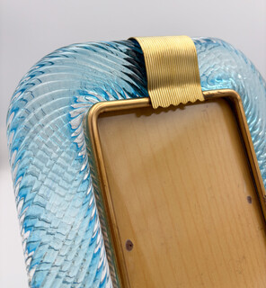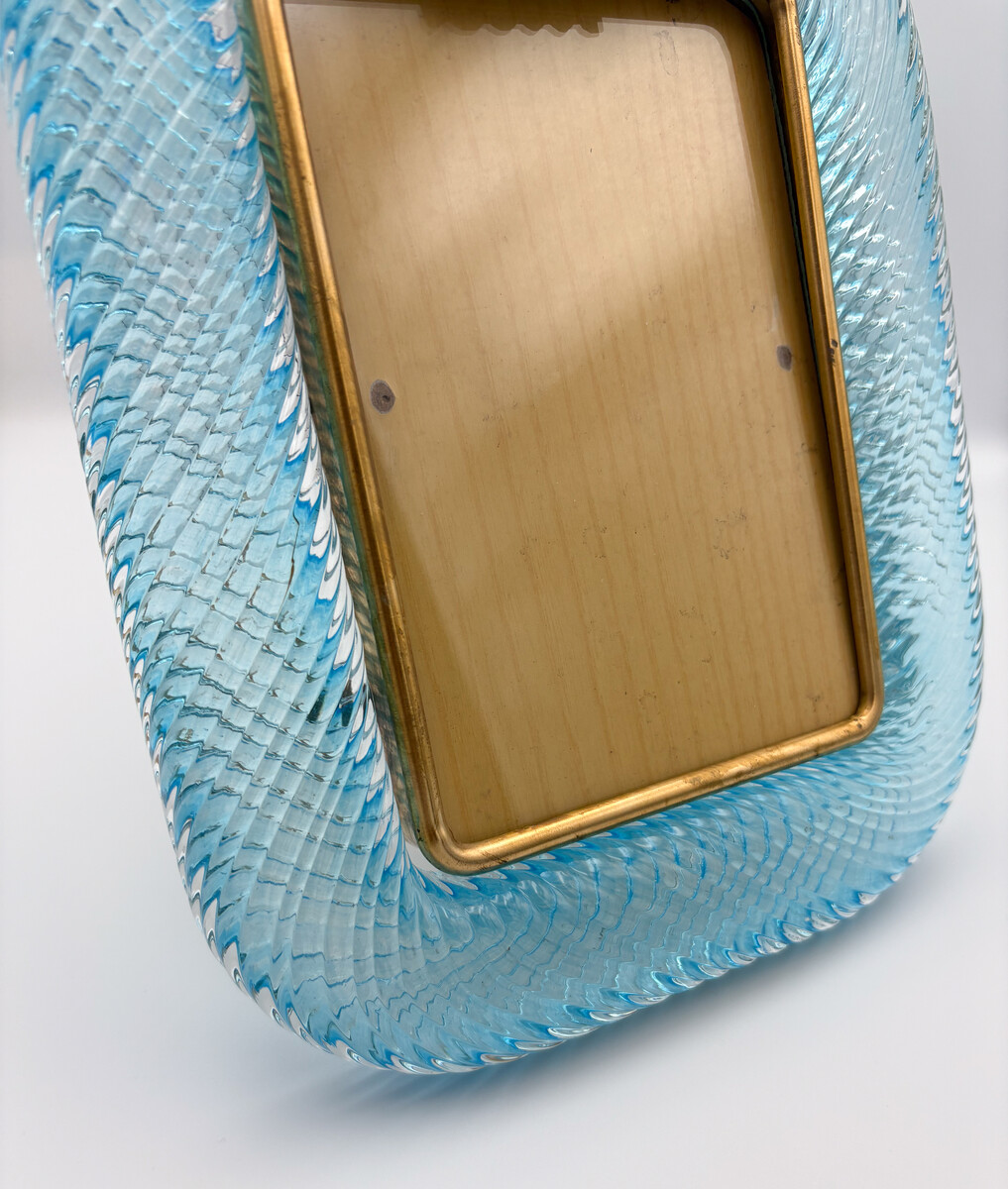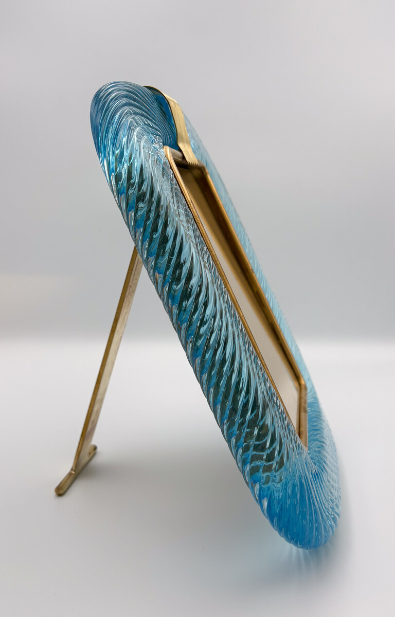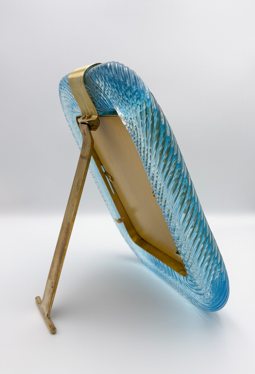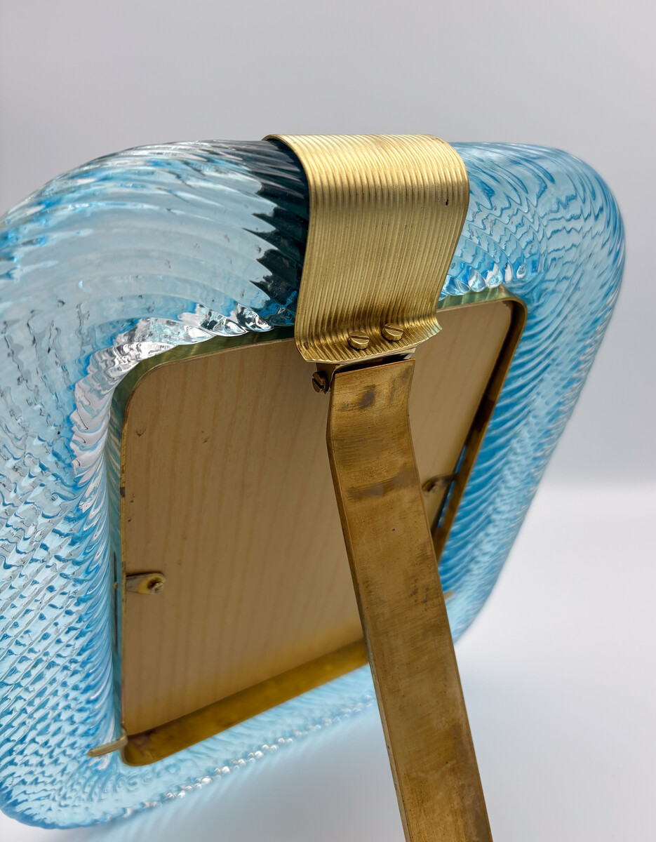 Barovier & Toso Blue Murano Glass and Brass Picture Frame, 2000s