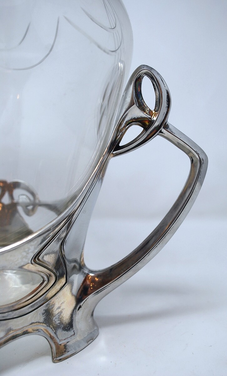 Nice art nouveau punch bowl - Germany - Glass and silver metal - poincon obe