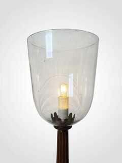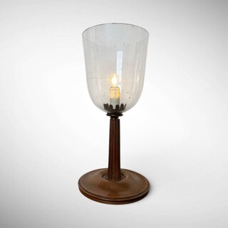 Pair of candle holders. Pair of candle holders in carved walnut and blown glass dating from the 1940s (origin France)
