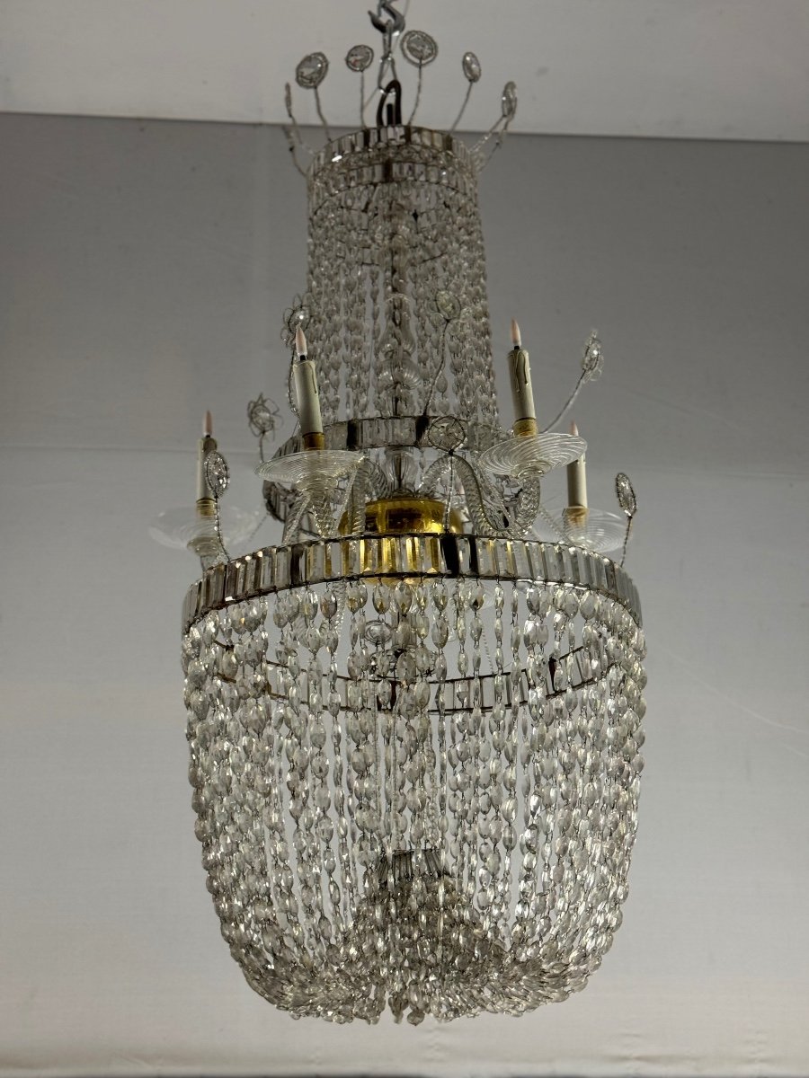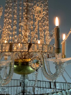 Important Navette Cut Crystal Pearl Bag Chandelier, Circa 1800 6 light arms, weight 32kg