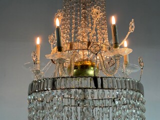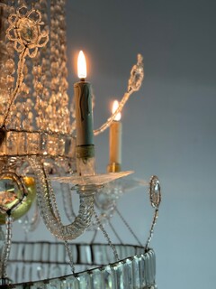 Important Navette Cut Crystal Pearl Bag Chandelier, Circa 1800
