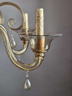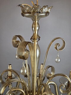 Murano chandelier in amber glass with 6 lights, circa 1950