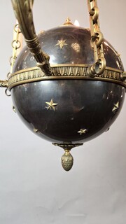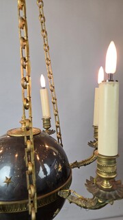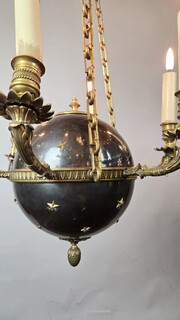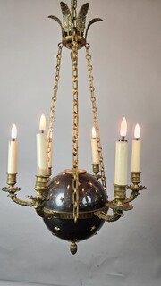 Pair of Empire chandeliers in sheet metal, bronze and brass, 19th