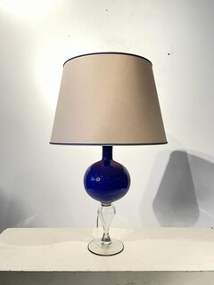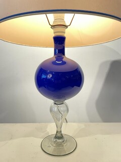Blue Murano glass lamp and translucent white glass base circa 1960