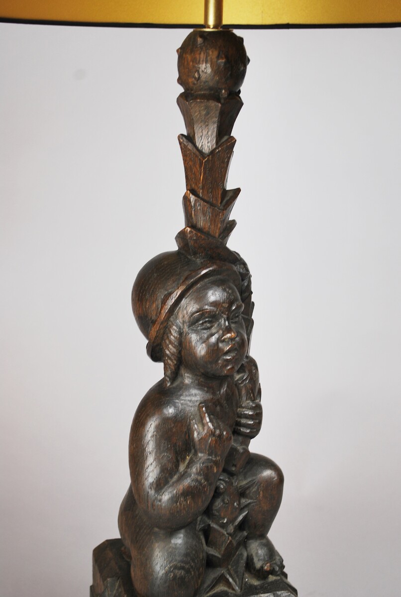 Carved wooden lamp base, Austrian work circa 1910 Height excluding shade: 49 cm