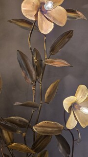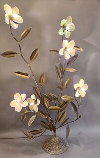 Metal floor lamp decorated with lotus flowers