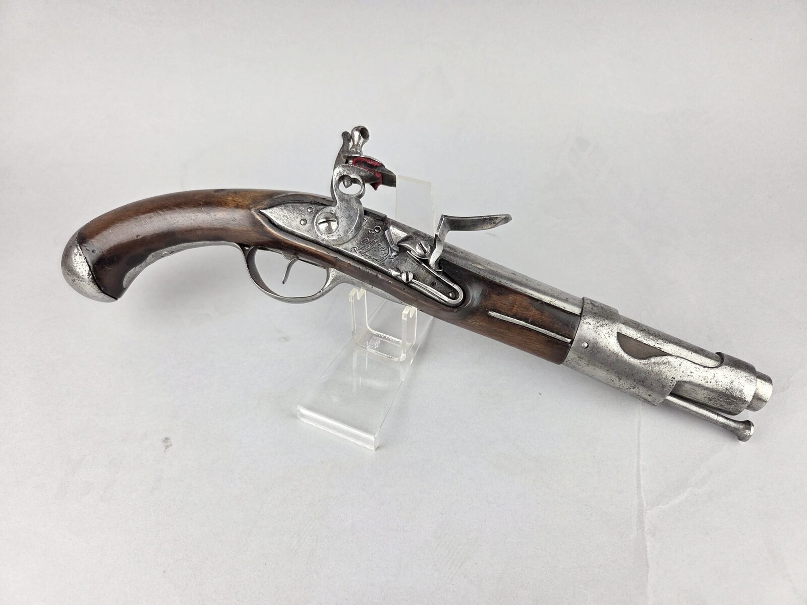 French Revolutionary Pistol Model 1763-66, breech end marked M1763, lock signed Manufacture de Liberville, inspector's mark, perfect mechanical and aesthetic condition, between 1792 and 1795