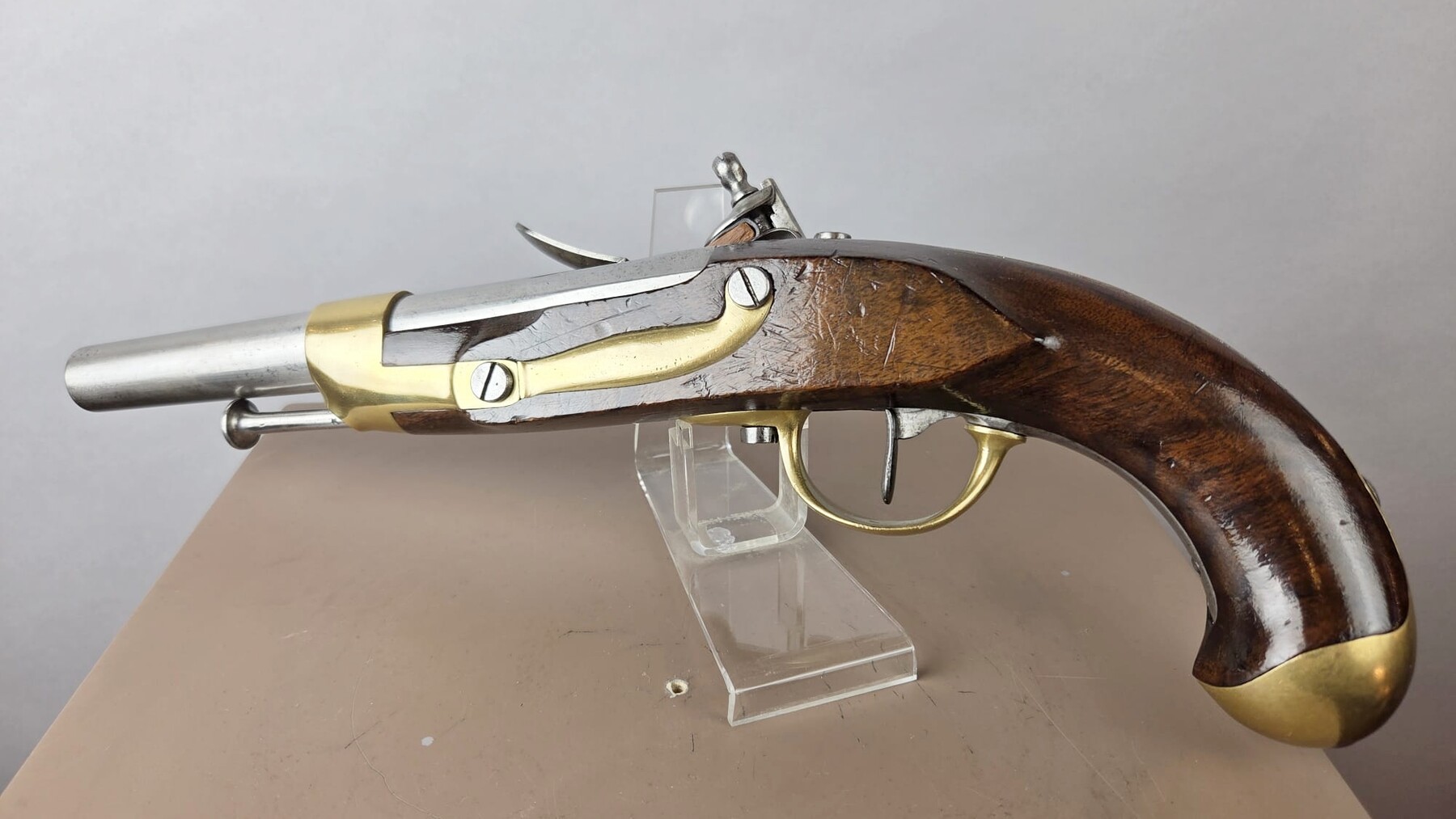 Regulation flintlock pistol of the Belgian cavalry, model 1816, rare model not converted to percussion.