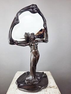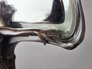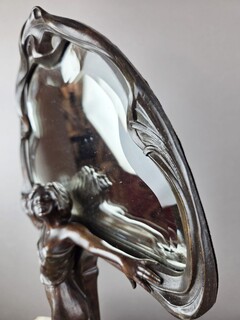 F. Floria, Art Nouveau mirror in patinated spelter