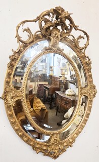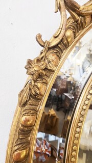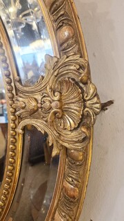 Louis XIV style medallion mirror in wood and gilded stucco, 19th