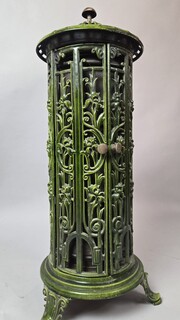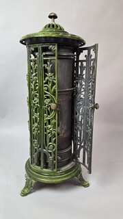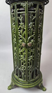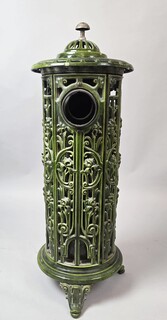Green enameled cast iron wood-burning stove, circa 1900