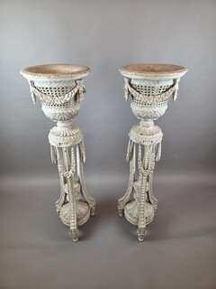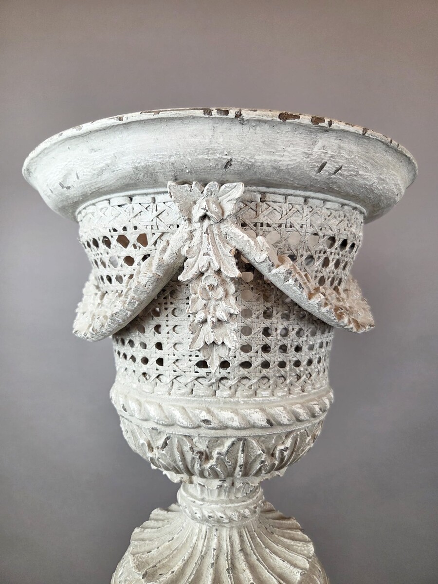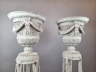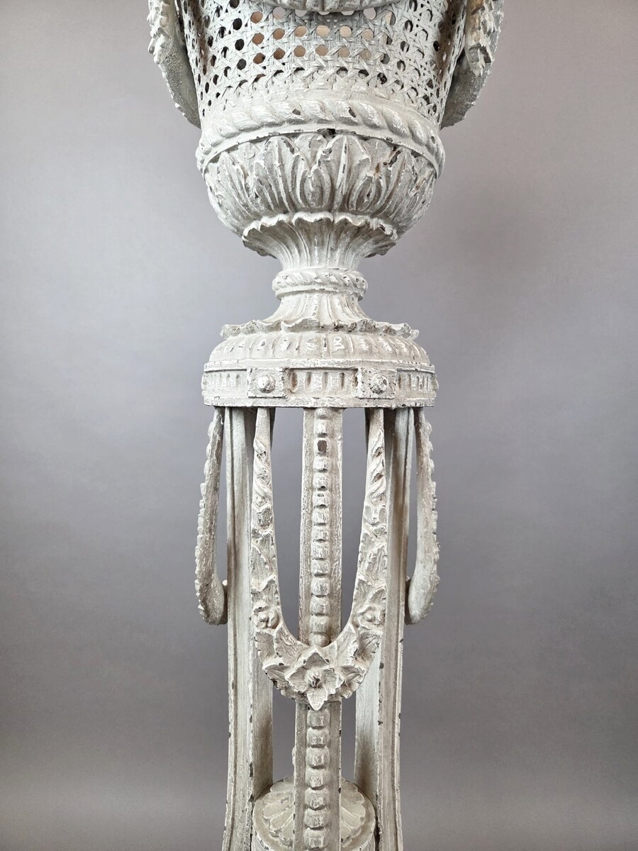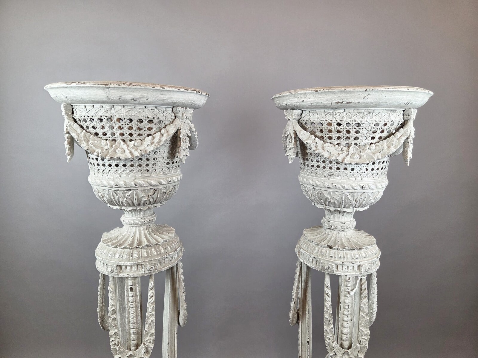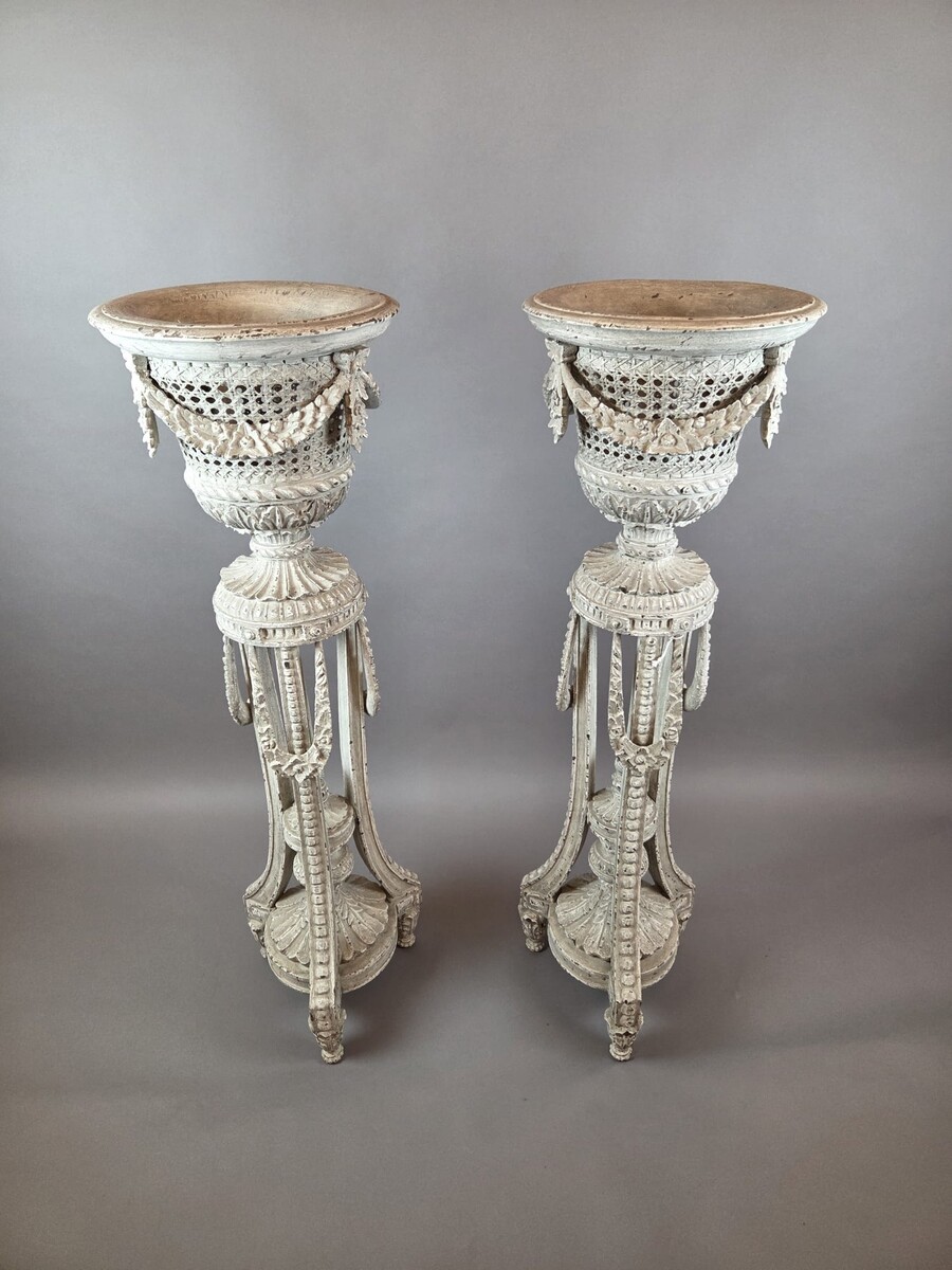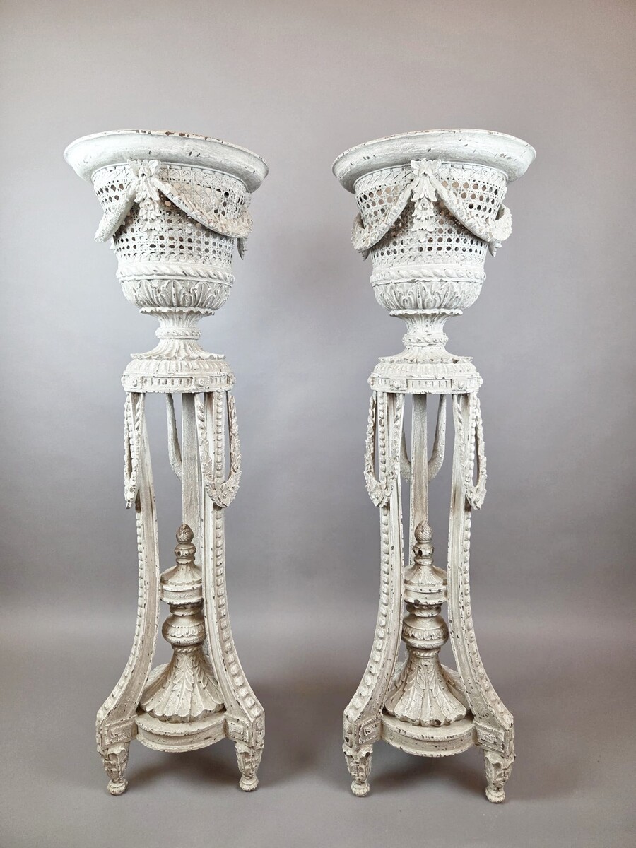 Pair of Louis XVI style planters, in patinated wood, early 20th century