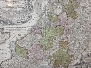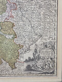 Matthaus Sutter 1678 - 1757 engraver, "XVII Provincia" polychrome engraving 18th