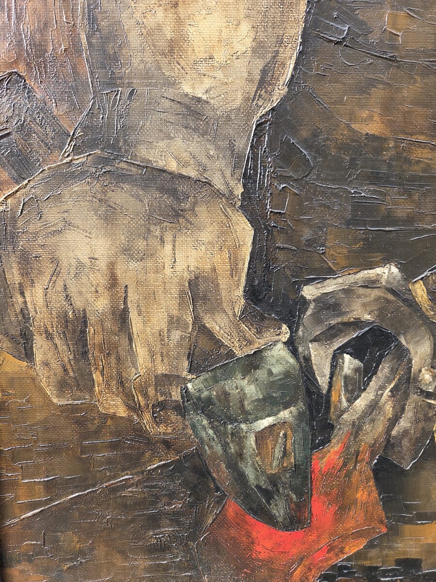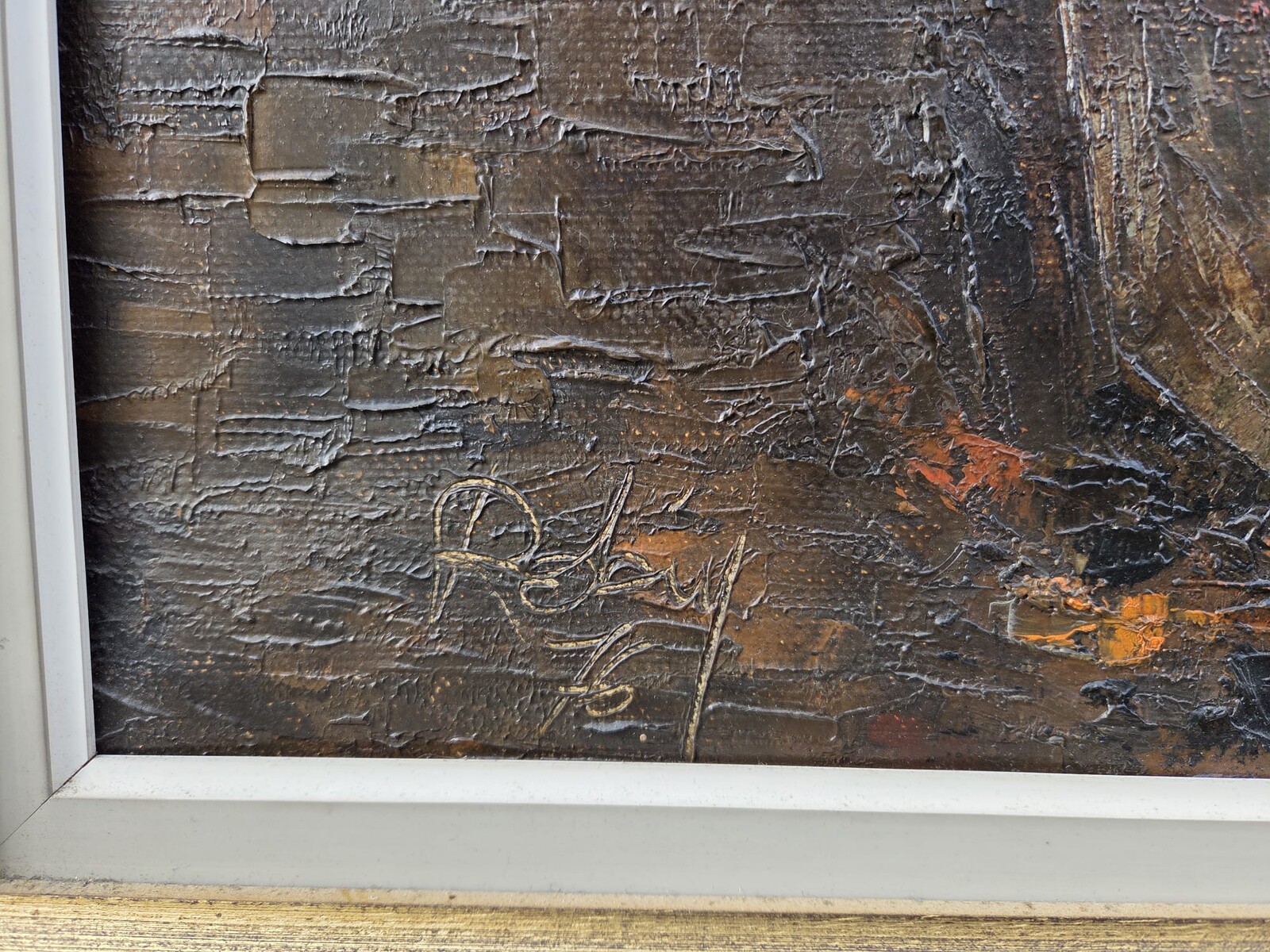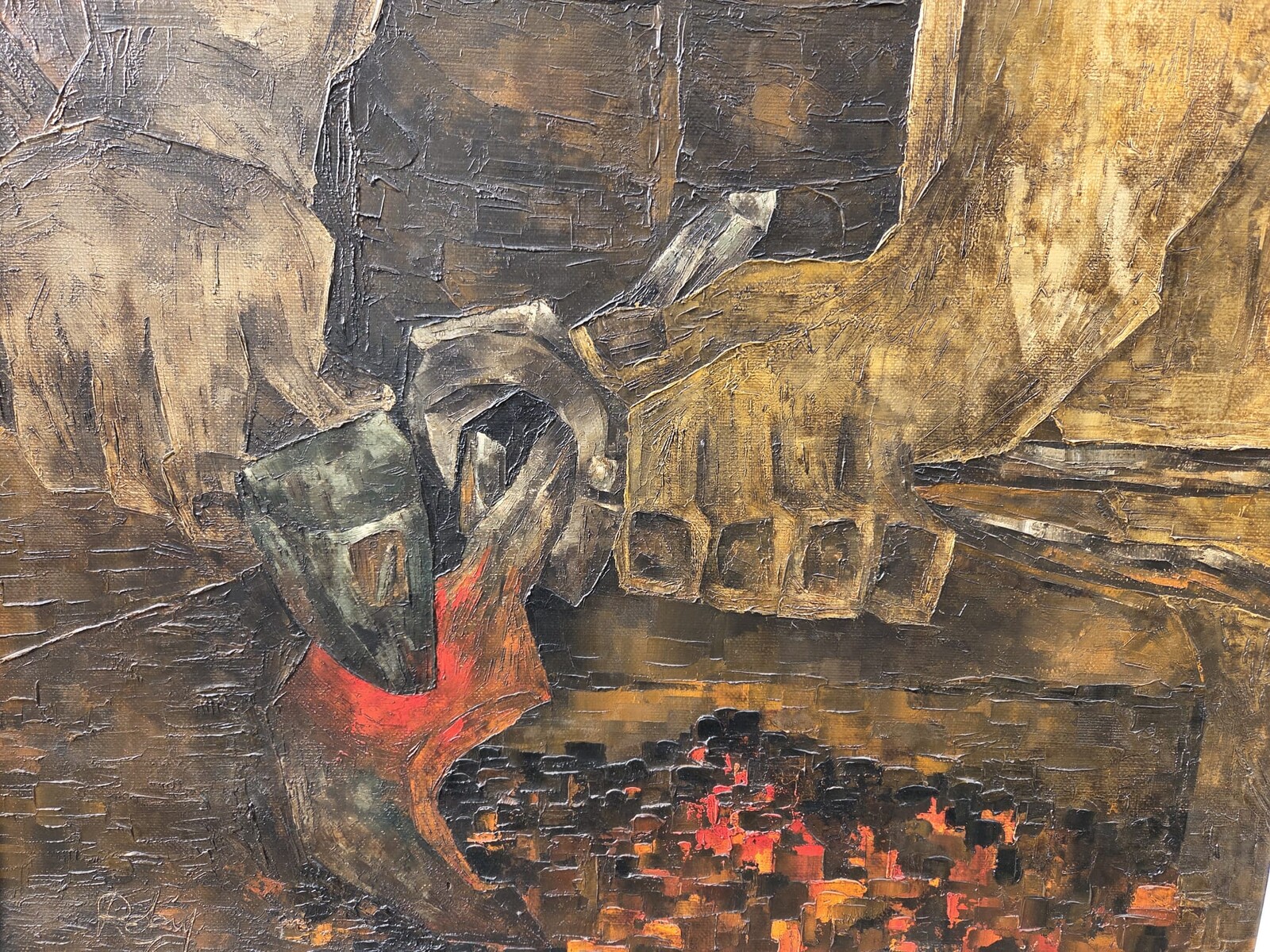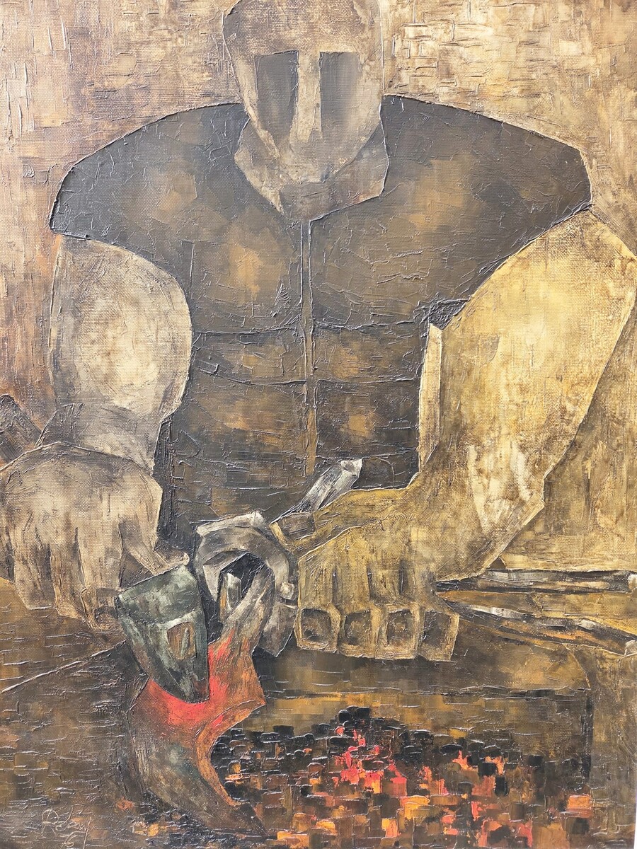 Oil on canvas "Blacksmith" signed Roby and dated 76. Dimensions without frame: 72 x 99 cm