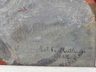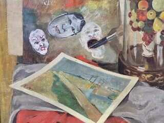 Pol F. Mathieu, Belgian school, 20th century, Oil on canvas "Still life with masks"