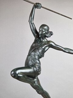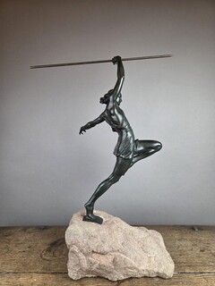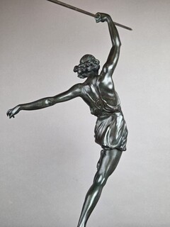 Pierre le Faguays, Max le Verrier Bronze with green patina "javelin thrower" 1st edition 1920