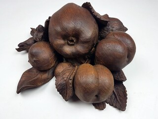 Set of 3 wood carvings in the round, representing bunches of fruit, 19th