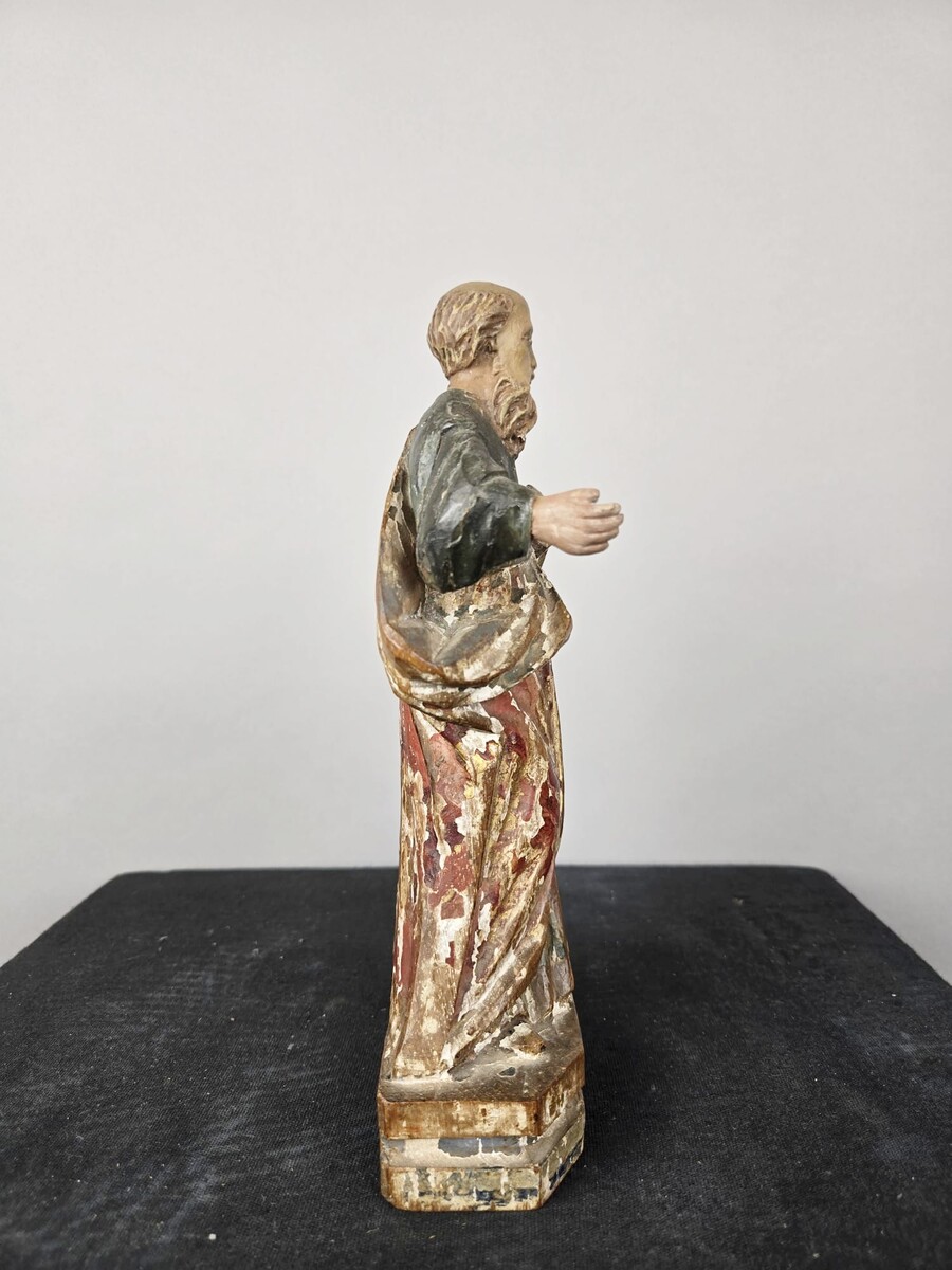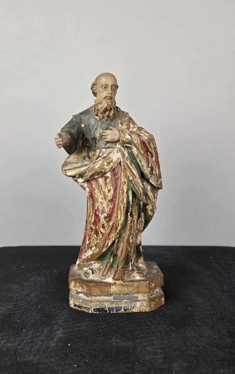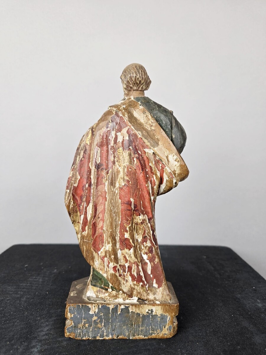 Polychrome carved wooden saint, circa 1800